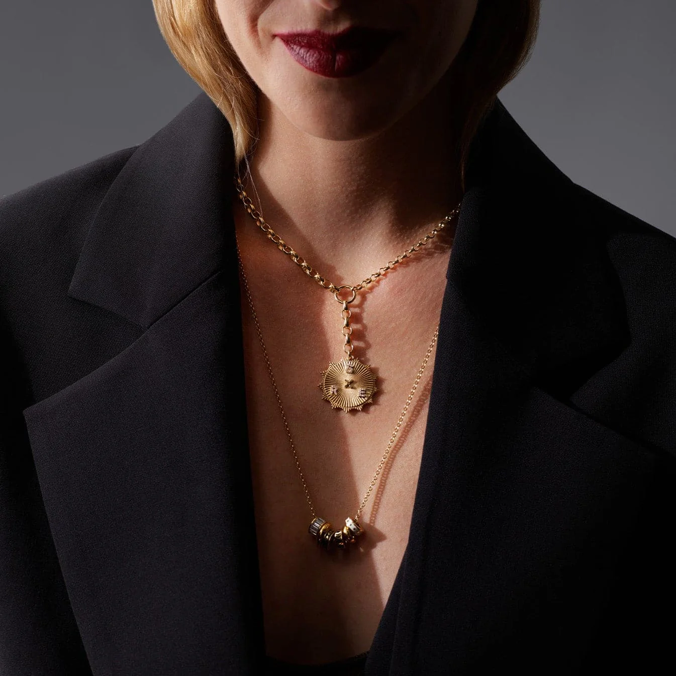 - Extended Clip chain necklace with 30 mm Medallion